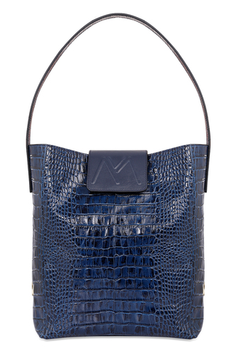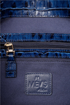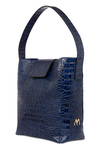 BELLA CALF LEATHER HOBO BAG NAVY BLUE CROC EMBOSSED
