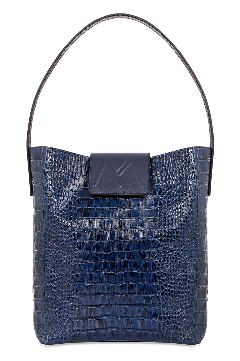 BELLA CALF LEATHER HOBO BAG NAVY BLUE CROC EMBOSSED for user reviews