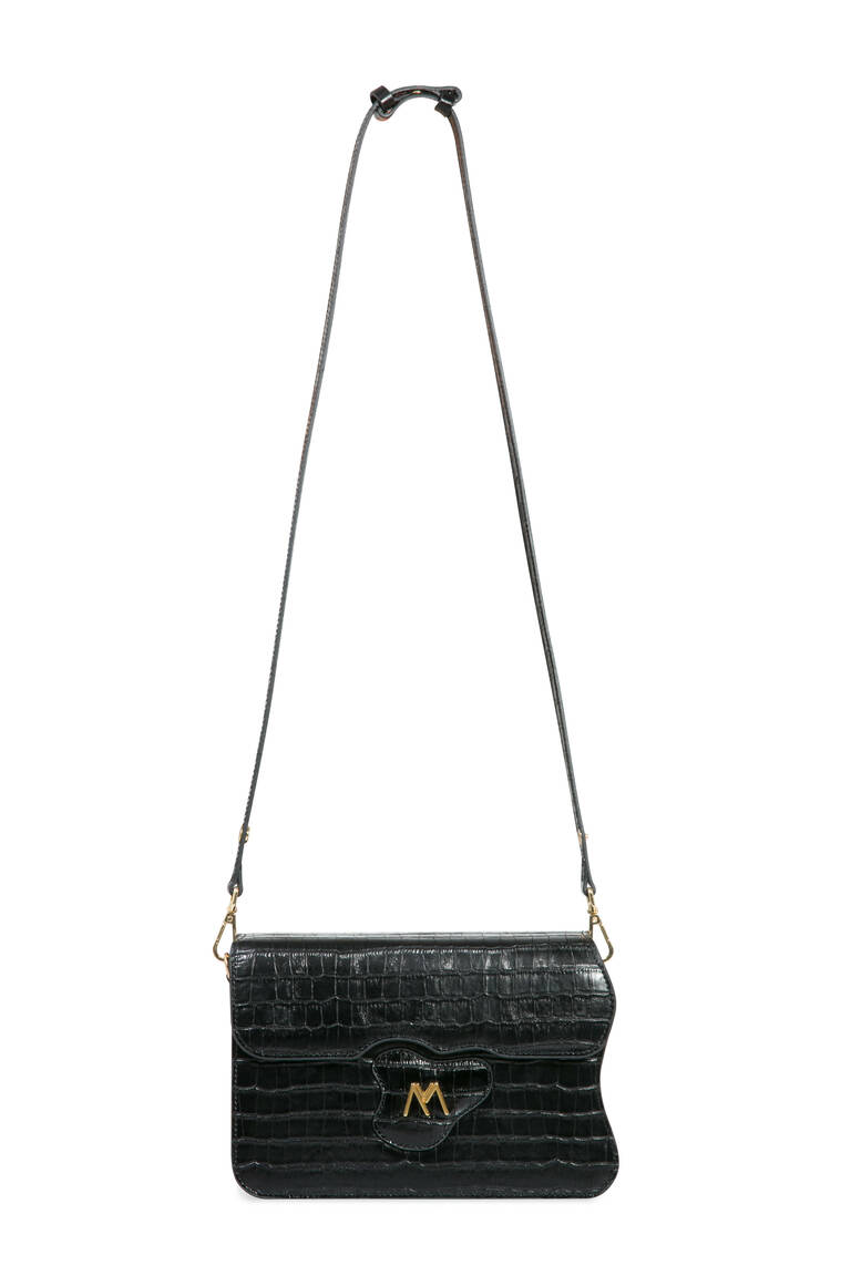 Greta Croc Embossed Calf Leather Crossbody Bag Black for user reviews