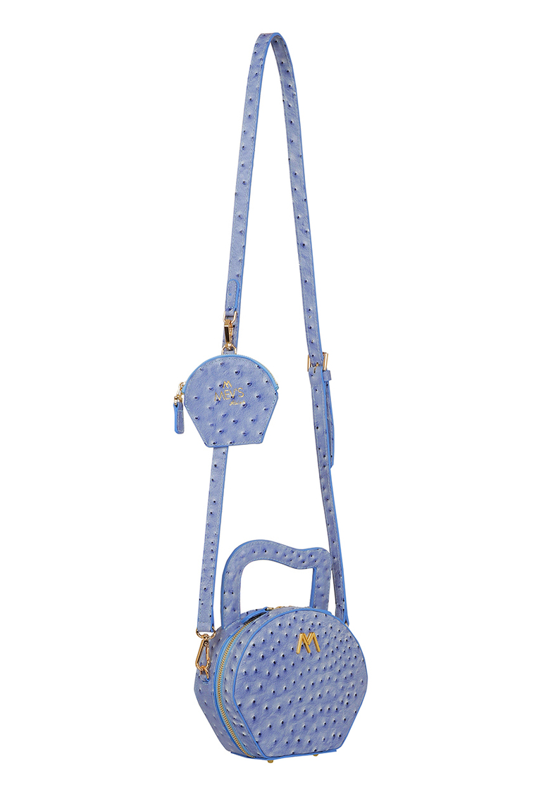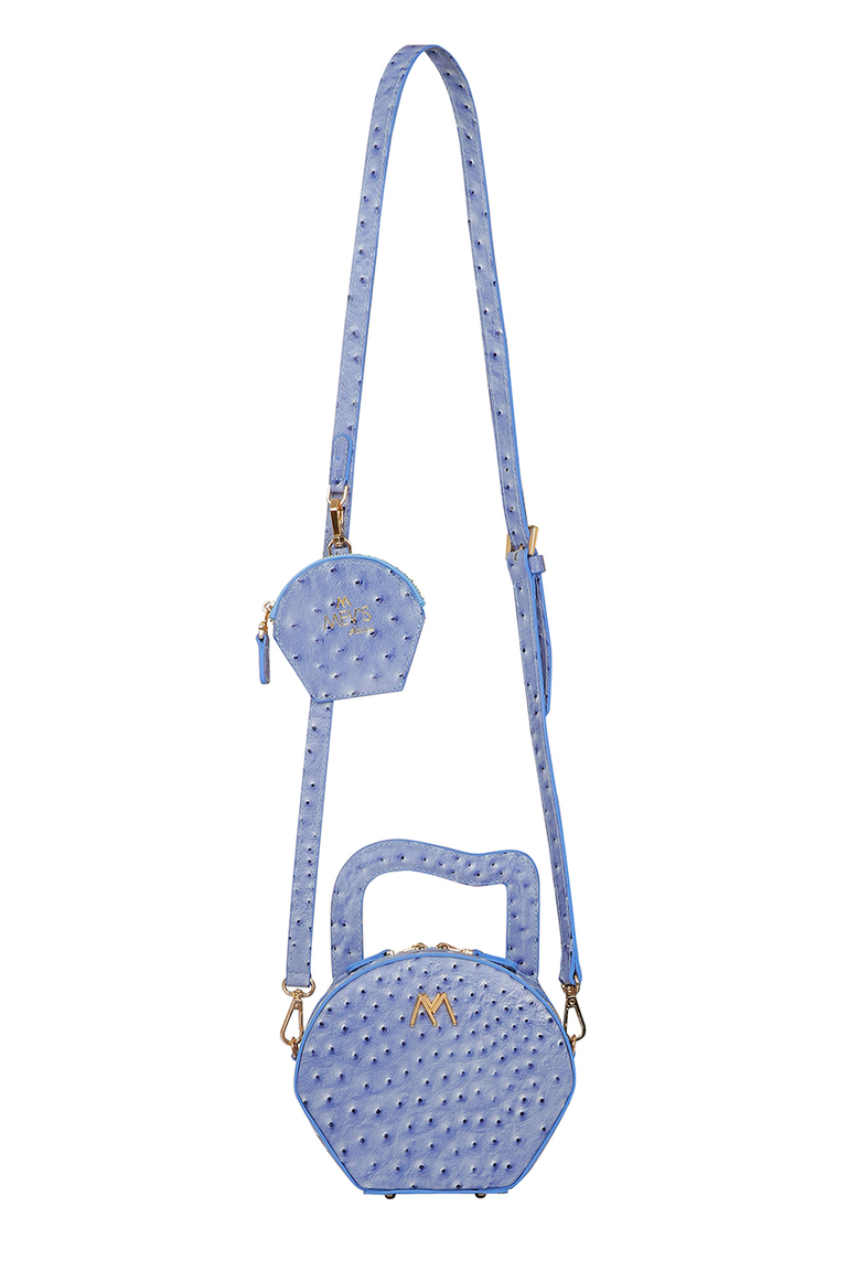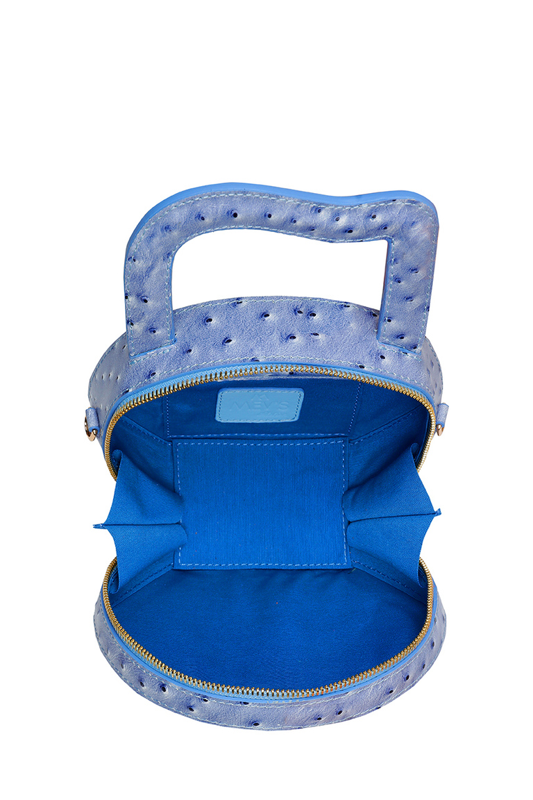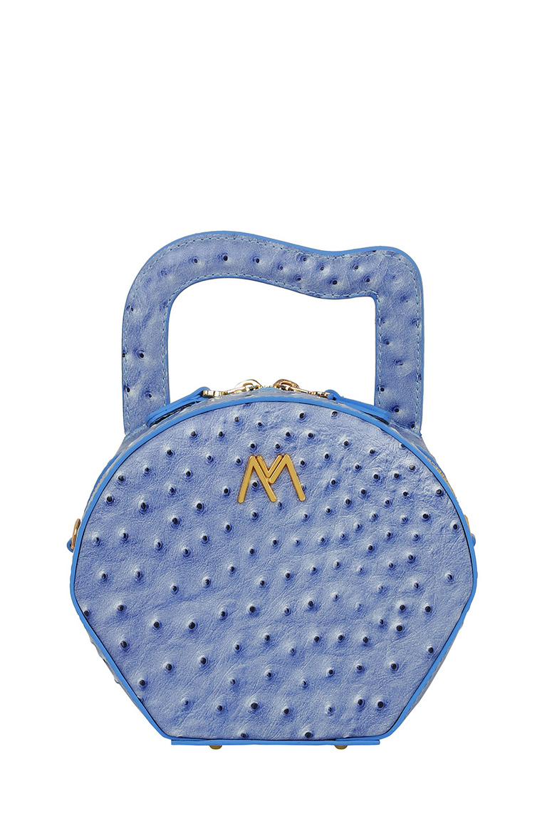 MINI NORA LEATHER BAG BLUE OSTRICH EMBOSSED