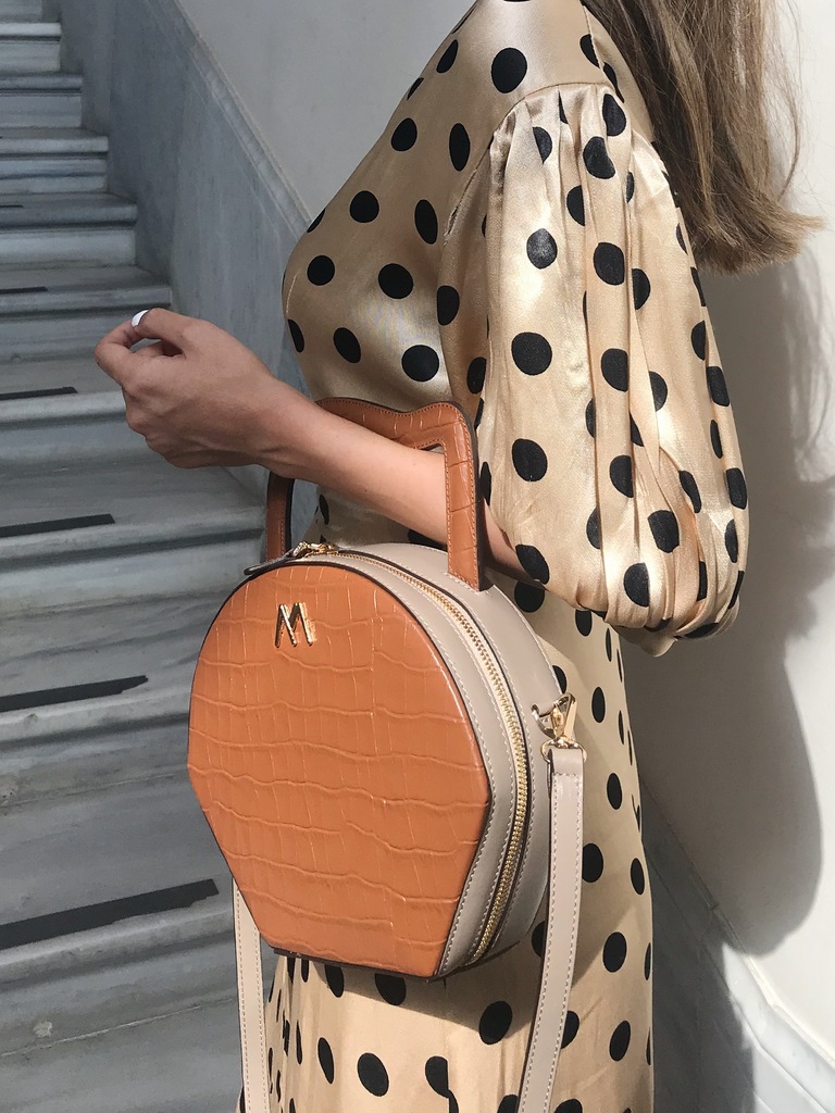 NORA LEATHER BAG TAN/MINK CROC EMBOSSED